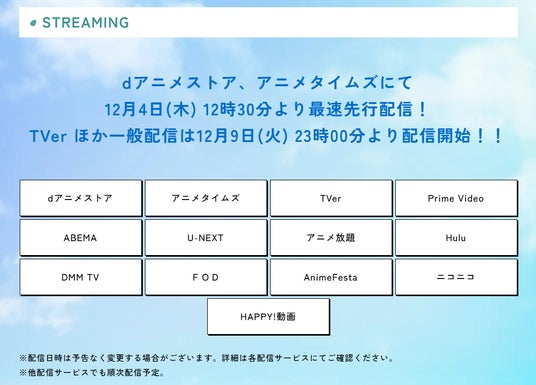 ・最速配信:dアニメストア・アニメタイムズ12月4日(木) 12時30分~
