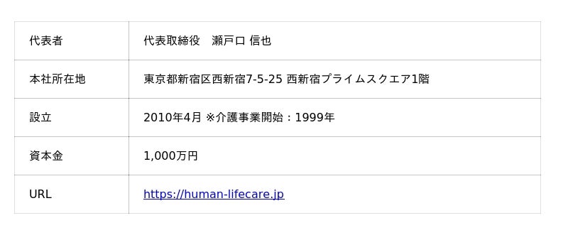 ●ヒューマンライフケア ウェブサイト:https://human-lifecare.jp
