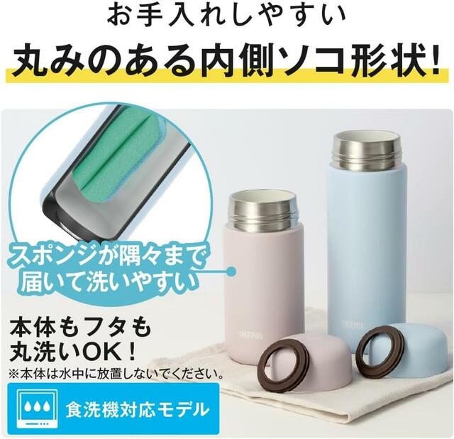 本商品は、本体・フタ・パッキンのすべてが食洗機に対応しているのが大きな特長。一般的なステンレスボトルではパッキンやフタを手洗いする必要がありますが、このモデルなら丸ごと食洗機に入れて洗えるため、毎日のお手入れがぐっとラクになります。