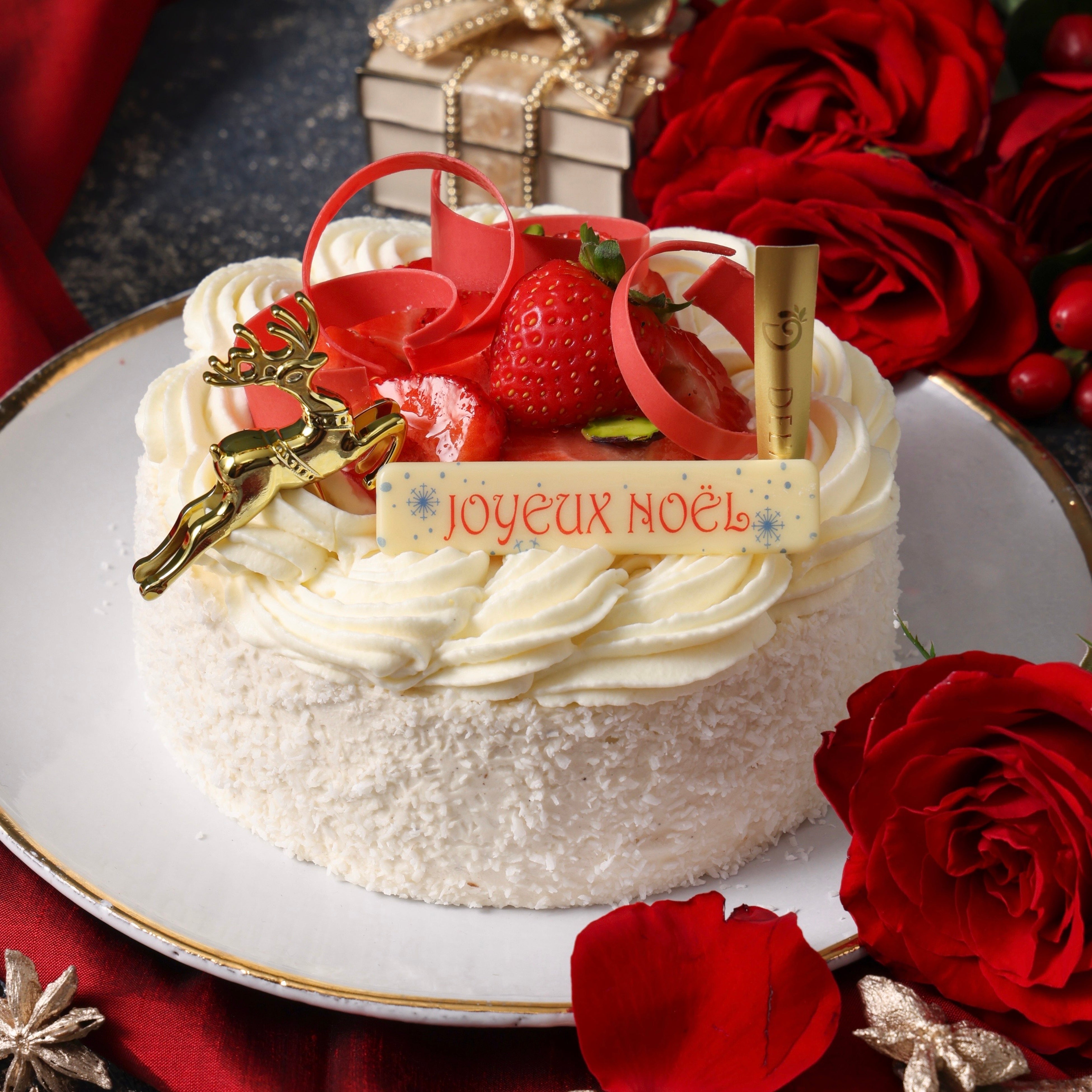 マスカルポーネとホワイトチョコレートを合わせた真っ白なクリームと真っ赤なイチゴがクリスマス気分を高めてくれるケーキです。中には柔らかなバニラとアーモンドのスポンジとイチゴのジュレを重ね、甘さとコク、酸味のバランスの取れた味わいに仕上げました。