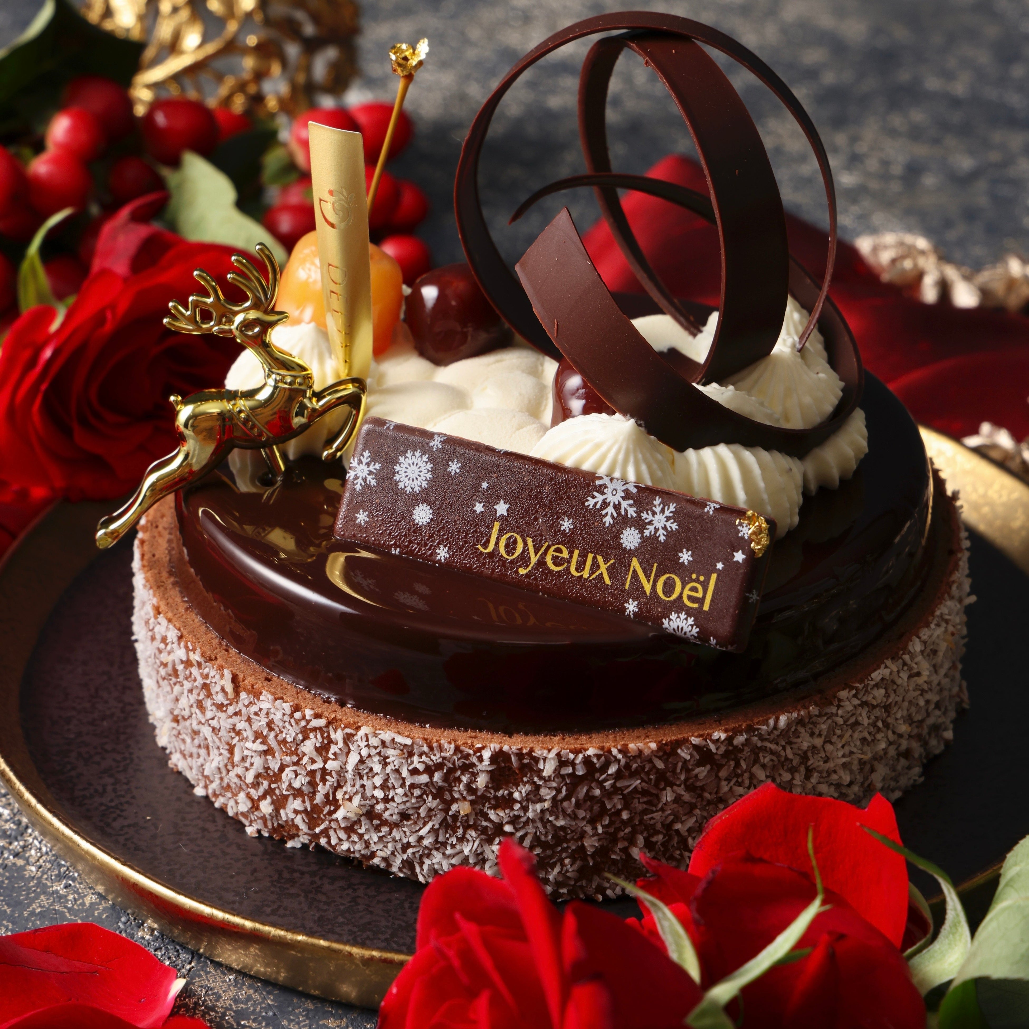 カカオ70%のビターチョコレートムースで包み込んだ、カカオの余韻が楽しめる大人のクリスマスケーキです。