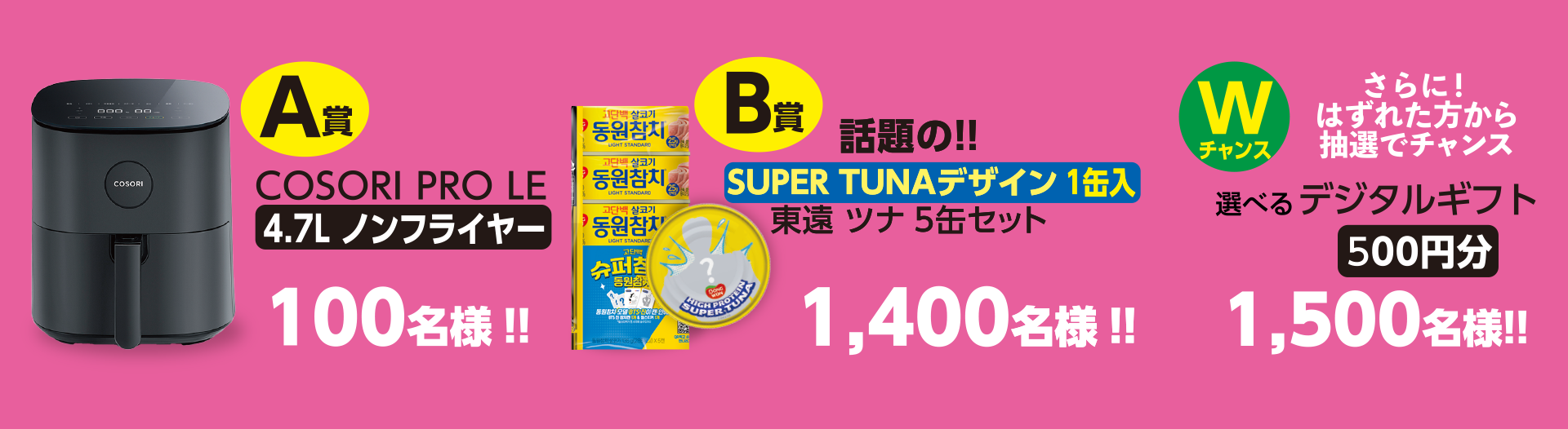 フォロー&リポストで「東遠ツナ5缶セットSUPER TUNAデザイン1缶入」が100名に当たります。