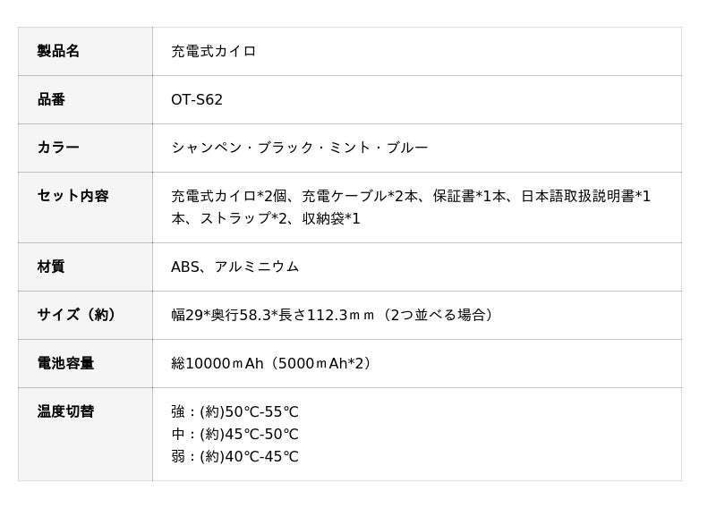 発売から3年、多くの方に選ばれ続けてきた充電式カイロ「OT-S62」は、