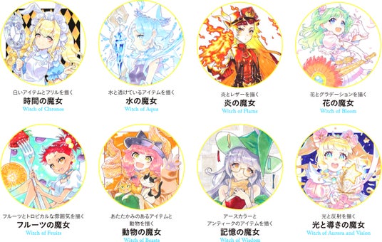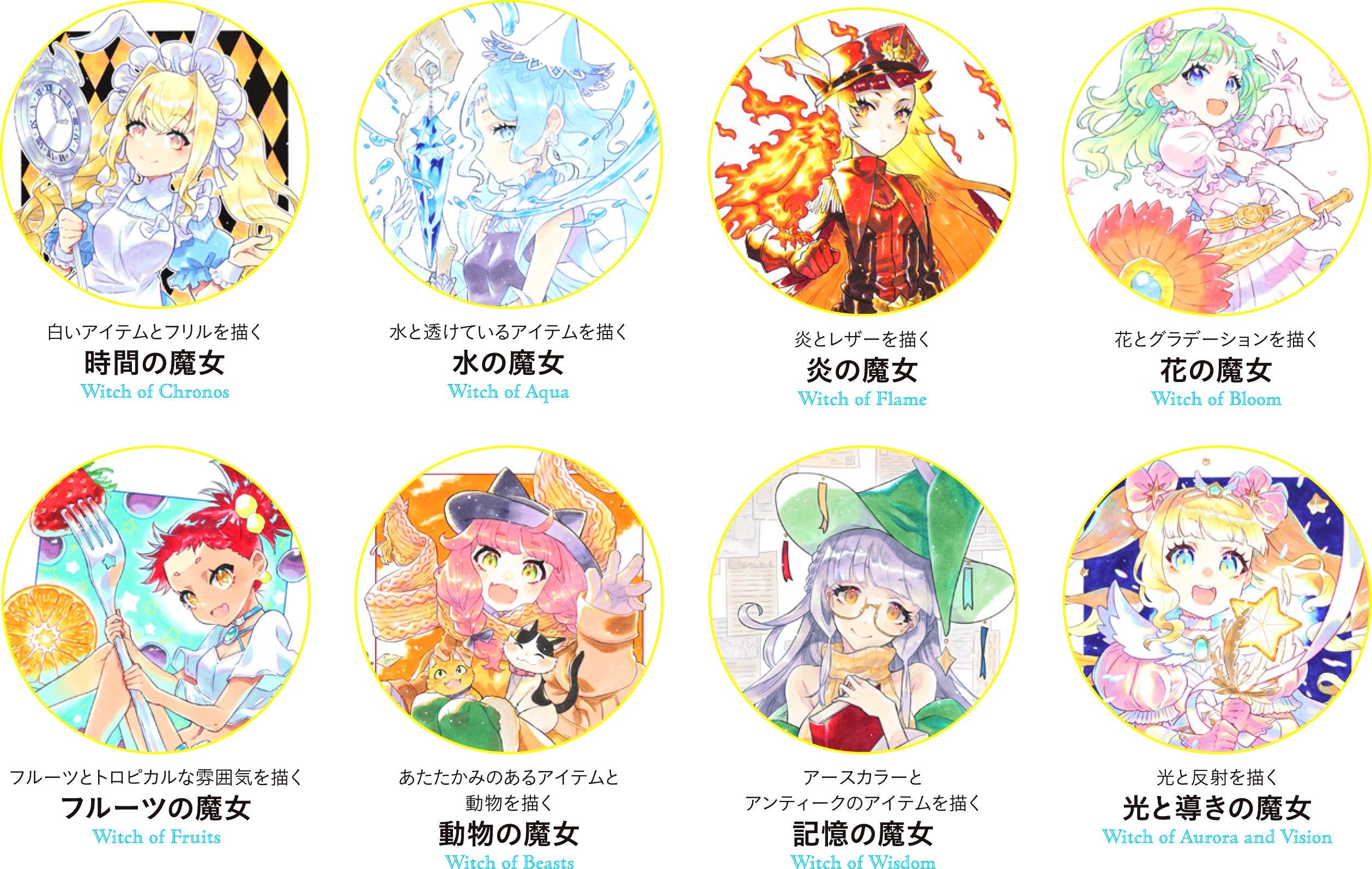 時間の魔女、水の魔女、炎の魔女、花の魔女、フルーツの魔女、動物の魔女、記憶の魔女、そして、光と導きの魔女。