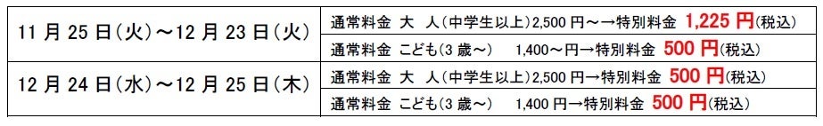 クリスマスイブと当日は入場料がワンコイン500円で超おトク!2025年11月25日(火)~2025年12月25日(木)