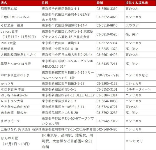 ふくしまの米が味わえるキャンペーン飲食店一覧