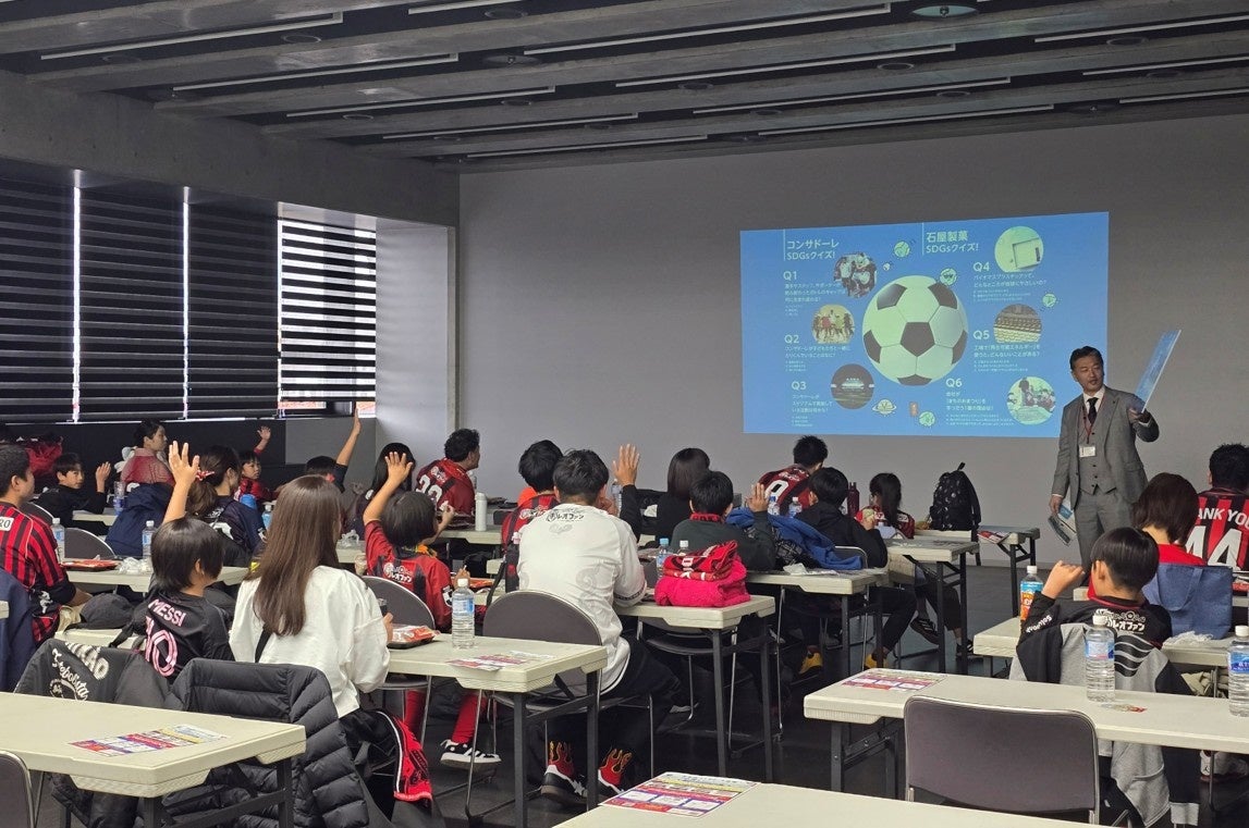 午前の部は、北海道コンサドーレ札幌 選手OBの石川 直樹さんとスクールコーチをスペシャルゲストに迎え、サッカー教室を実施しました。その後は、選手たちが実際に使用するロッカールームや記者会見場の見学も実施しました。