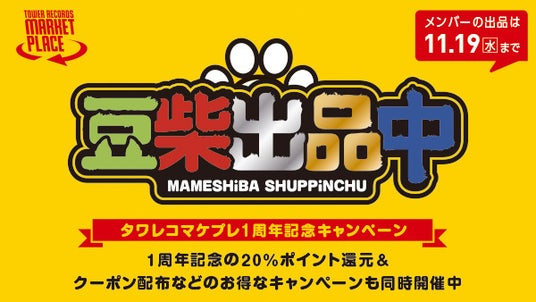 タワーレコード株式会社(本店所在地:東京都渋谷区、代表取締役社長:嶺脇育夫)は、11月13日(木)から11月19日(水)まで、商品売買プラットフォーム「タワーレコード マーケットプレイス」開設1 周年を記念して、ベストアルバム『NO BEAN, NO BARK』を発売したアイドルグループの豆柴の大群とコラボレーションをします。