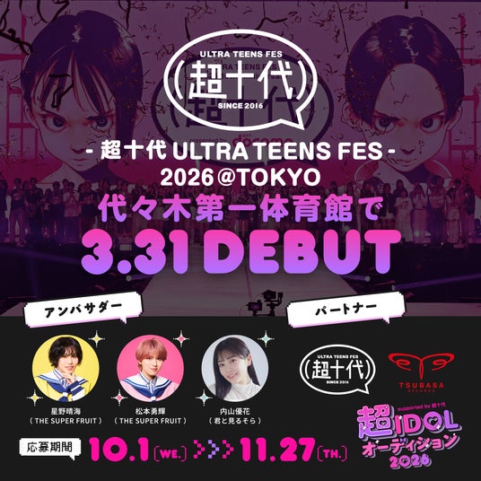 この度、体験型ティーンズフェス「超十代」と、川嶋あい・井上苑子・水曜日のカンパネラ・THE SUPER FRUITなどを輩出してきた「TSUBASA RECORDS」がタッグを組んだ新アイドルオーディション『超IDOLオーディション2026 supported by 超十代』を開催(制作:株式会社TWIN PLANET<ツインプラネット>)。