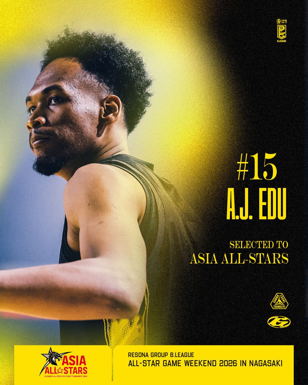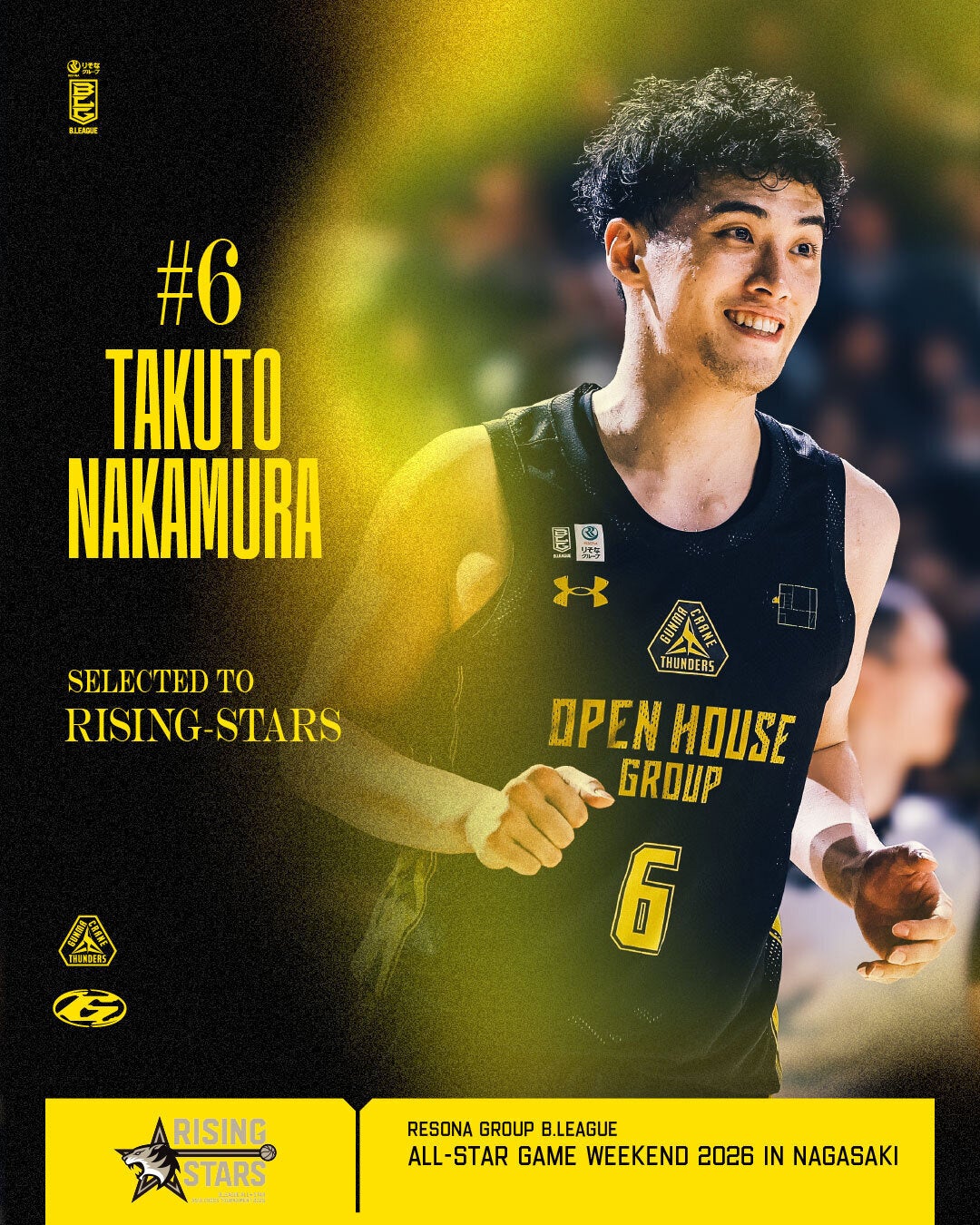 この度、2026年1月16日(金)-18日(日)にハピネスアリーナで開催の「りそなグループ B.LEAGUE ALL-STAR GAME WEEKEND 2026 IN NAGASAKI」に、#6 中村拓人 選手、#9 辻直人 選手、#15 エージェー・エドゥ 選手の出場が決定しました。