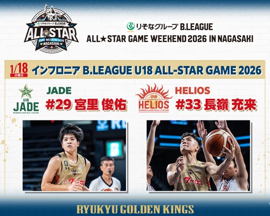 また、1月18日(日)に行われる「インフロニア B.LEAGUE U18 ALL-STAR GAME 2026」には、キングスU18から宮里俊佑選手、長嶺充来選手が選ばれました。