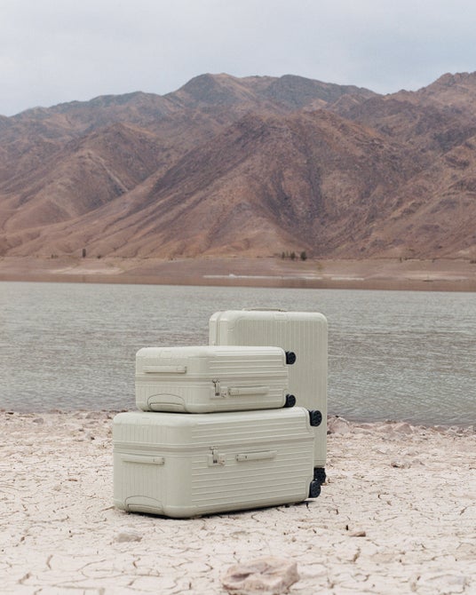 発売に合わせて撮影された広告ビジュアルでは、ひび割れた砂丘、緑豊かな山々、粘土質の山々が広がる自然の風景を巡るジャーニーが展開されます。その中で、新色のエッセンシャルスーツケースは、単なる旅のパートナーにとどまらず、自然の美しさとシンプルさへの賛辞として表現されています。
