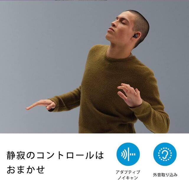 周囲の騒音レベルに合わせてノイズキャンセルの度合いを自動で調整するアダプティブノイズキャンセリングとハイブリッド型のノイキャンを搭載。シーンに合わせた使い分けができるのも嬉しいポイントです。