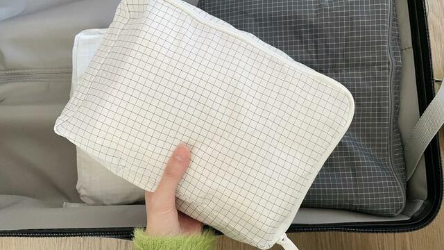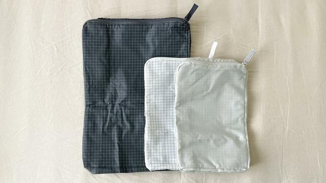 ベーシックカラーのチェック模様の衣類用バッグで、大きいサイズが1枚、小さいサイズが2枚入っています。