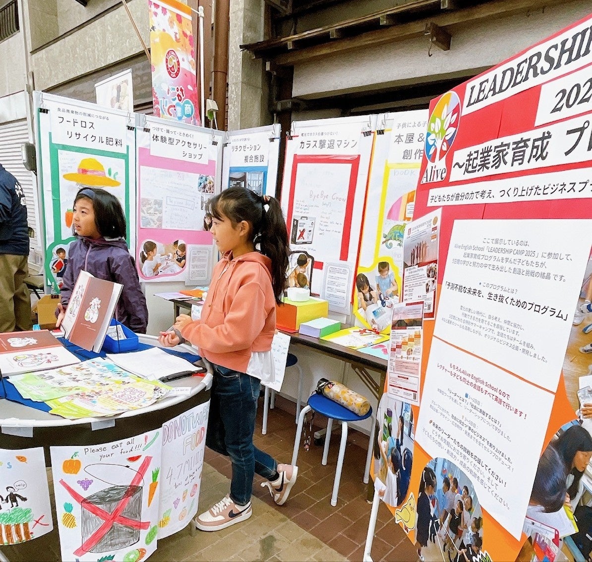 株式会社アライブ(所在地:愛知県名古屋市、代表取締役:三井博美)が運営するアライブイングリッシュスクールは、2025年8月に実施した「夏のリーダーシップ・起業家育成キャンプ(英語で開催)」に参加した小学生の考案したアイデアを基に、『オリジナルノート2冊セット』を商品化いたしました。このオリジナルノートは、2025年11月8日(土)に名古屋市の円頓寺商店街で開催された「円頓寺 秋のパリ祭」にて、路上販売1日体験として実施され、合計200冊(100名様分の2冊セット)を子どもたちが中心となって早々に完売するという成果を収めました。