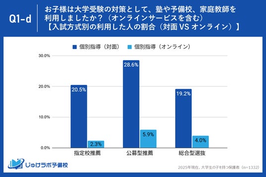 対照的に、学校の成績(評定)が最重要となる「指定校推薦」では、学校の進度をよく知る地元の対面指導へのニーズが集中し、オンラインの利用は限定的であると考えられます。