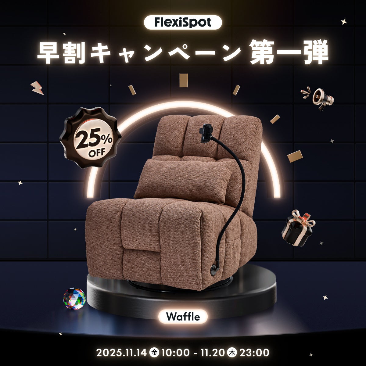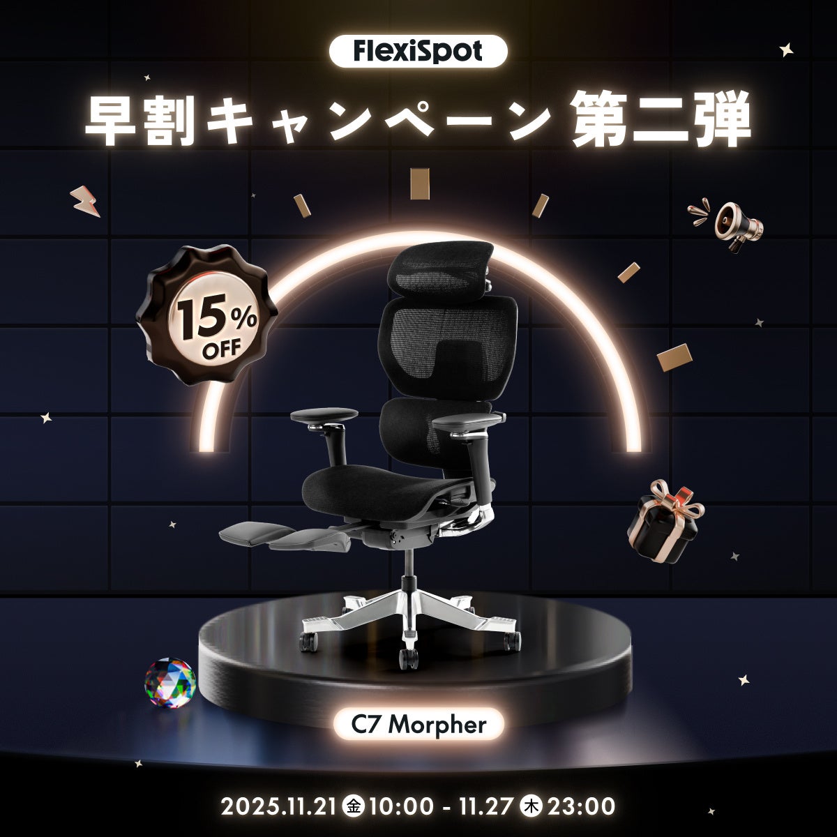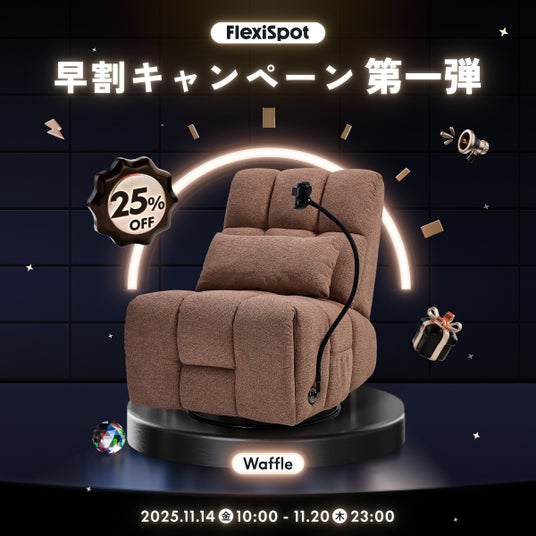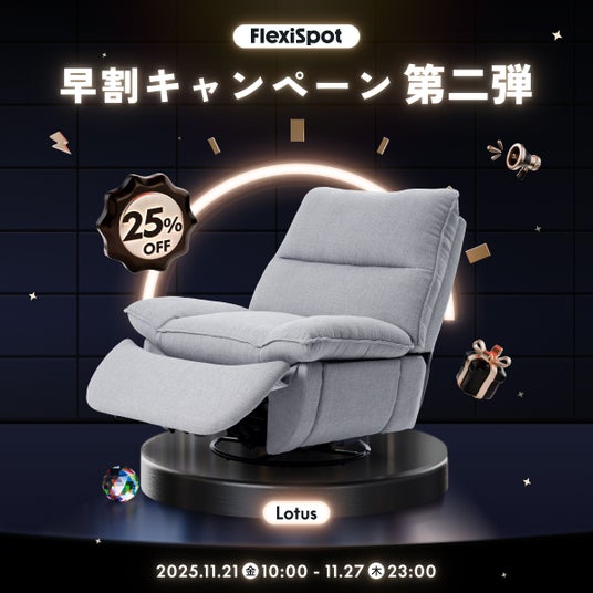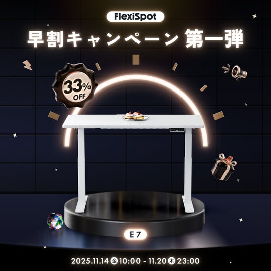 Flexispot Japan株式会社(本社:埼玉県入間郡、代表取締役:斉冰白、以下「FlexiSpot」)は、2025年11月14日(金)~12月1日 (月)の期間限定で、年に一度の大型セール「ブラックフライデーキャンペーン」を開催いたします。
