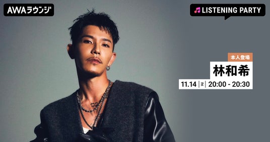 AWA株式会社(本社:東京都港区、代表取締役CEO:冨樫晃己)が運営する、サブスクリプション型(定額制)音楽ストリーミングサービス「AWA(アワ)」は、2025年11月14日(金) 20:00~20:30にて、無料で誰でも参加できるオンライン空間「ラウンジ」で、林和希が音声とチャットで登場するリスニングパーティーを開催いたします。