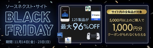 ソースネクスト株式会社(本社:東京都港区赤坂1-14-14 第35興和ビル4階 代表取締役社長:小嶋 智彰)は、11月14日(金)から11月23日(日)までの10日間、弊社サイト上で、”BLACK FRIDAY”を開催いたします。