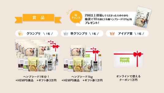 ・本キャンペーン用の3つのハッシュタグ「#ヘンプおにぎりコンテスト」「#hemps」「#ヘンプシード」をつけてご投稿いただいたお写真・動画は、HEMPS公式アカウントやWEBサイト等でご紹介させていただく場合がございます(見やすくするためのトリミング等の簡単な編集を行うことがあります)。