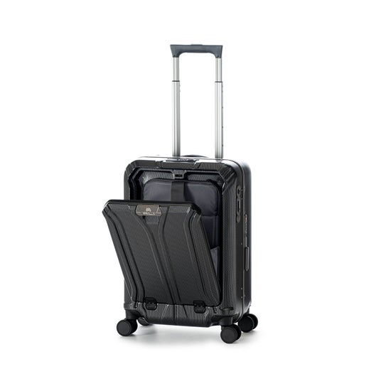 【限定特価】A.L.I フロントオープンキャリー 14,800円抗菌仕様のトップハンドルを採用。機内への持ち込みも可能なサイズ。フロント部分が開くので、とっさに荷物を取り出したいときにも楽々です。