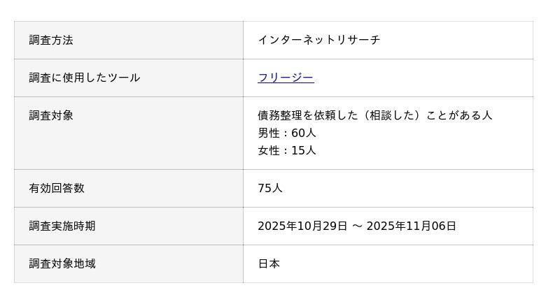 ココモーラでは、ユーザーの生の声を調査するため「債務整理に関するアンケート調査」を行いました。アンケート調査の概要は以下の通りです。