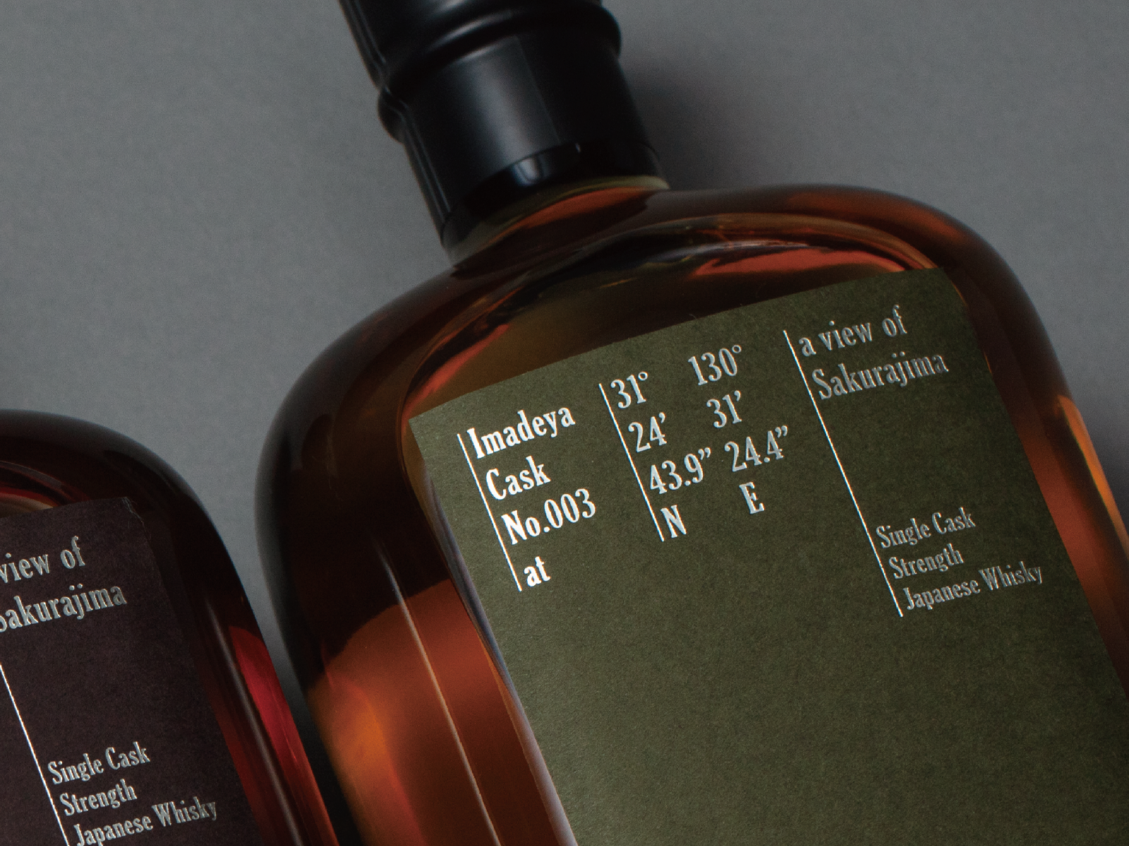 今回のシングルカスク・ウイスキーはIMADEYA が2021年より所有していた樽の1つで、御岳蒸留所内の熟成庫にて3年3か月間熟成されたもの。ラベルのモチーフとして、鹿児島県内の各所から見渡すことのできる様々な表情の桜島が描かれており、「熟成する樽によって味わいが変わる」とされるシングルカスク・ウイスキーを「見る角度によって表情が変わる」と評される桜島になぞらえています。