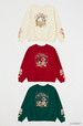 クリスマスの服を着て集ったミッキー&フレンズのスウェットは、クリスマスカラーで展開。
