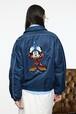 ミッキーをジャカードで編み立てたニットトップスは、大胆なデザインに。