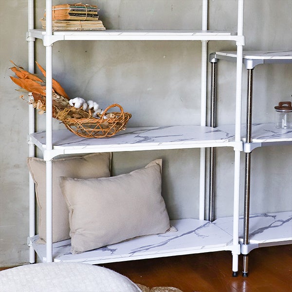 大理石調の天板が住空間をワンランク上に。人気のウッドシェルフを特別価格でご提供。