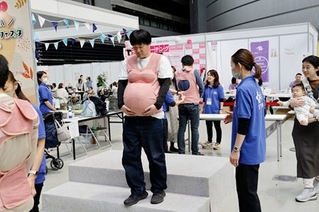 専用装具を使用して妊婦さんを疑似体験。