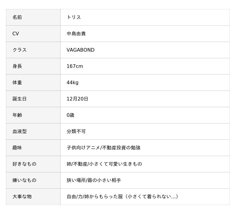 ▼トリス プロフィール