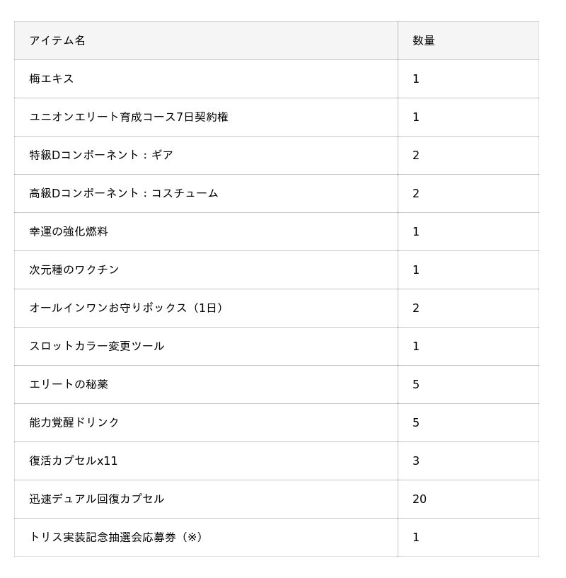 期間中、トリスの実装記念イベントから「トリス実装記念応募券」が獲得できます。