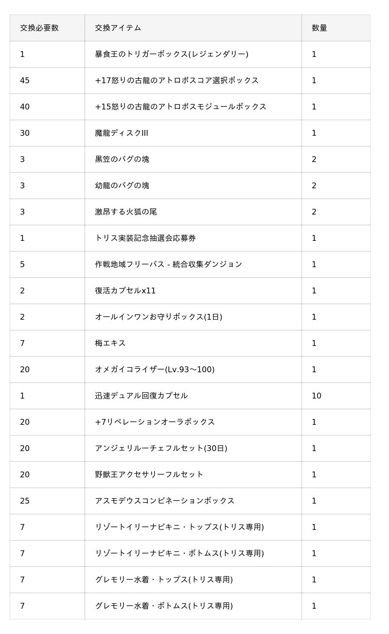 このぬいぐるみを集めて、NPC「成長支援ショップ - レイヴン」のイベントショップに持っていくと様々なアイテムと交換が可能です。