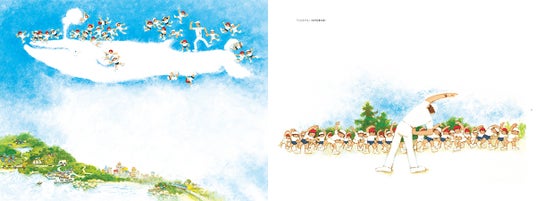 戦後まもなく、月刊絵本の世界で活躍を始めた柿本幸造。初期の絵には、柿本幸造らしい動物と子どもたちのほか、迫力ある電車や車、低い目線の独特の構図、なつかしい風景、俯瞰図、ビビッドな色彩の絵などがあり、多彩な魅力を見せてくれます。