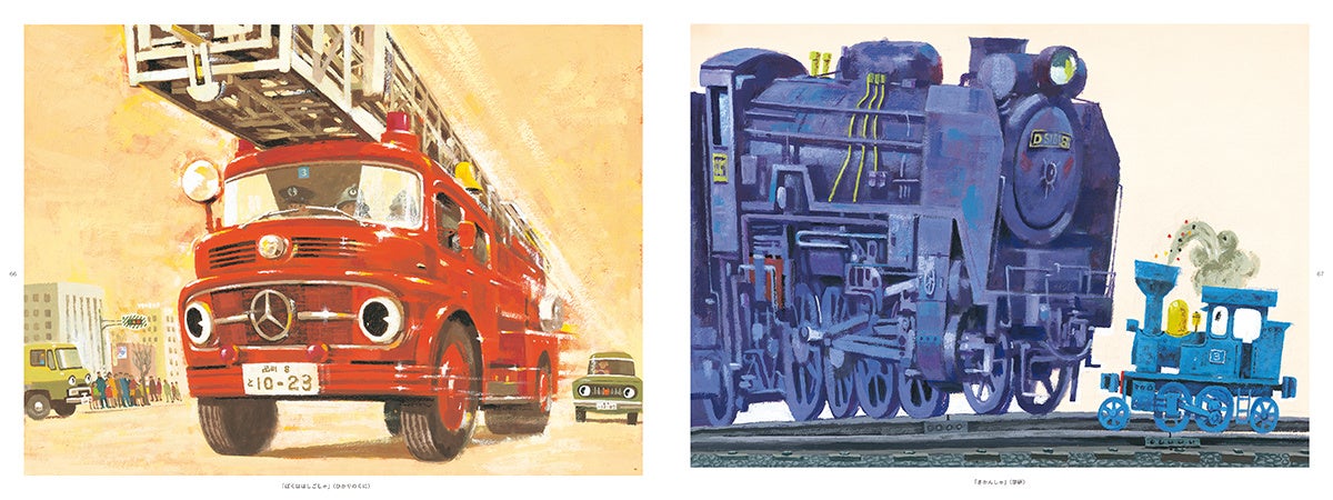 ▲「ぼくははしごしゃ」(ひかりのくに)、「きかんしゃ」(学習研究社)