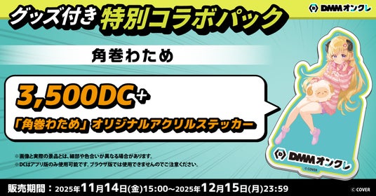 合同会社DMM.com(本社:東京都港区、PFカンパニーCEO:村中悠介、以下DMM)が提供するオンラインクレーンゲームサービス「DMMオンクレ」は、ホロライブ所属VTuber「角巻わため」がセレクトした景品を獲得できる「特別セレクトフェア」を、2025年11月14日(金)~12月15日(月)まで開催します。