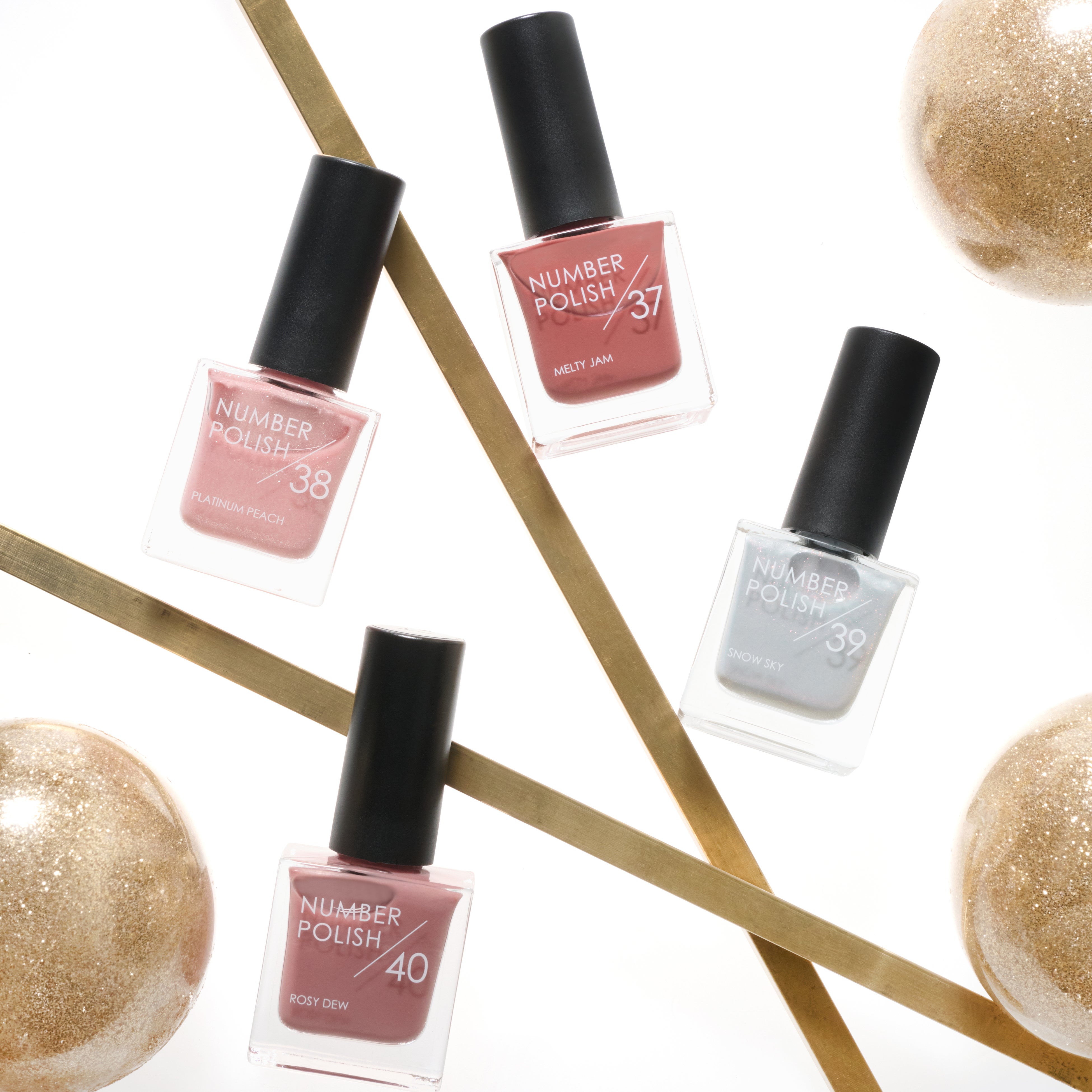 ナンバーポリッシュから、冬の指先を艶やかに彩る新色が登場。透明感あふれるシアーな発色で、うるうるとしたツヤと優しい輝きをプラス。ナチュラルでほんのり甘いニュアンスが指先に血色感を与え、手元が華やかな印象に。デイリー使いはもちろん、冬のイベントシーンにも映える4色です。