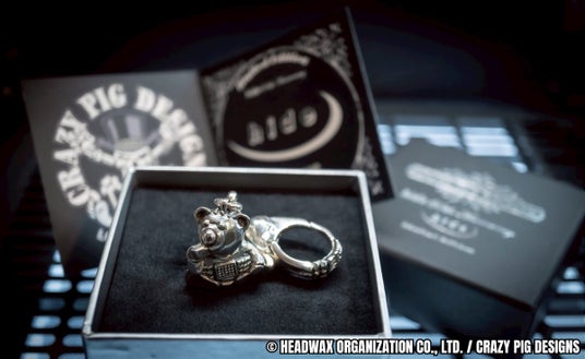 hide x CRAZY PIG DESIGNS待望のコラボレーション第3弾は、hideが生み出したアイコニックでユニークなサイコベアをモチーフに、CRAZY PIG DESIGNSの創業者であり、現在も唯一人のデザイナーを務めるアーマンド・セラがスターリングシルバーの重厚な質感を存分に活かしたキーリングです。