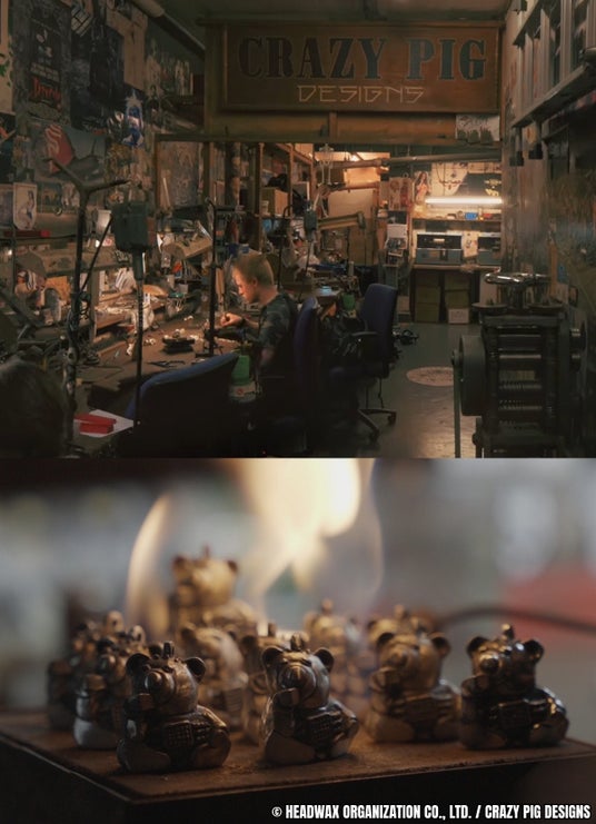 サイコベアの印象的なポーズは、アーマンド・セラが膨大なhideの写真資料を丹念に吟味し、hideが「LANTERN BATTERY」を片手に、口元にあてて座っている一枚から着想を得ています。この姿をサイコベアに投影することで、hideが持つ唯一無二のアバンギャルドな魅力を表現しています。hideによる原案のエッセンスを守りつつ、CRAZY PIG DESIGNSらしい個性を加えた、まさに“コラボレーション“と呼ぶに相応しいデザインです。