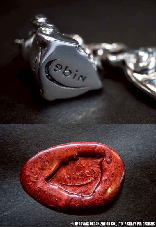 大切な人への手紙の蝋封に使用する(ワックスで封をしてスタンプする)など、hideのエッセンスを日常に取り入れることができるこの仕掛けは、多彩な発想で人々を魅了してきたhideの想像力とCRAZY PIG DESIGNSがジュエリーに新たな可能性を見出す姿勢を象徴しています。