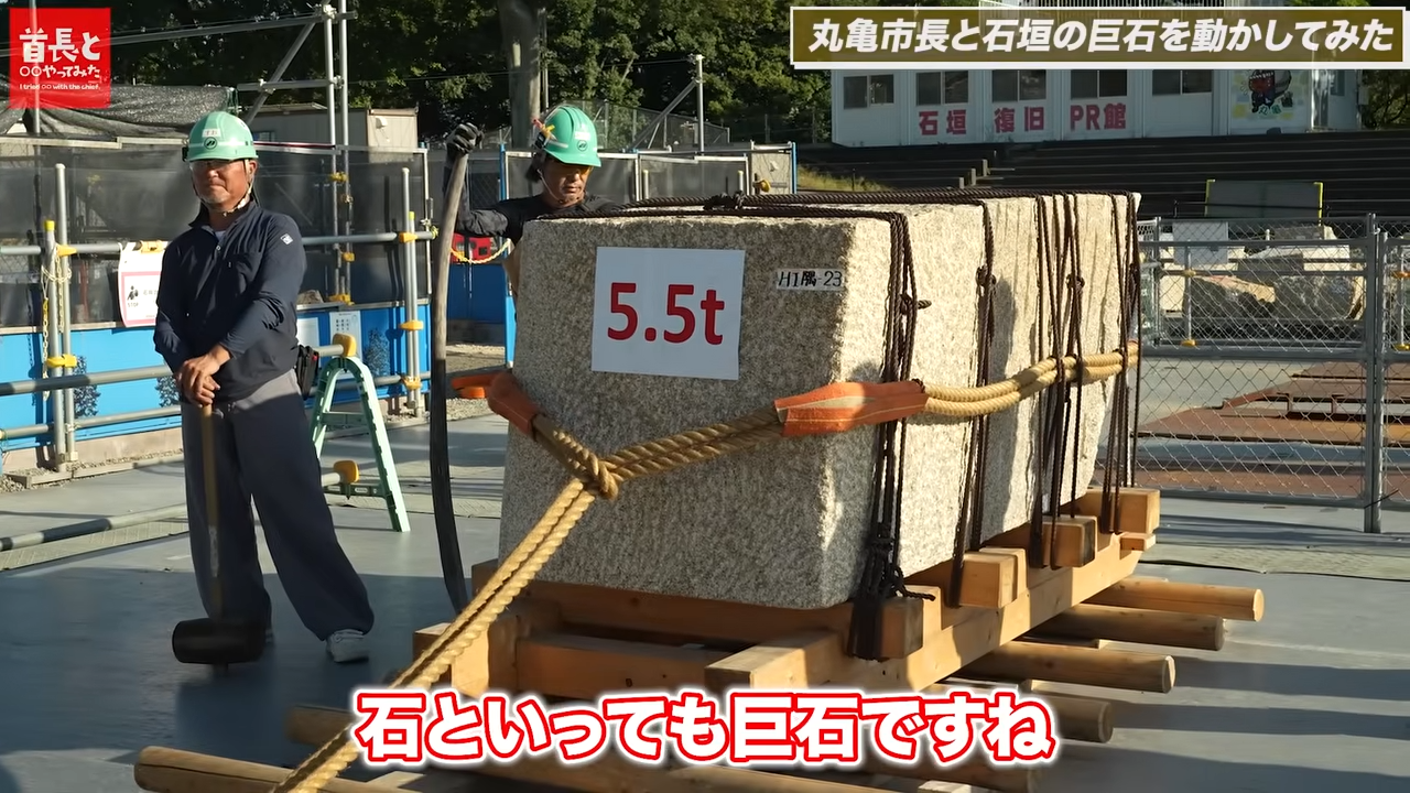 今回の『首長と○○やってみた』では、石垣修復が進む丸亀城で江戸時代の石運び、“石曳き”を体験!