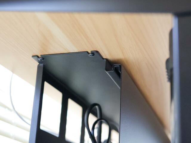 取り付け方は、付属の4つの木ネジでデスクの天板下につけるだけ。