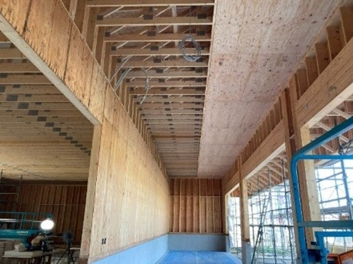 本受賞作品は、カー用品店というこれまでにない分野における木造建築のチャレンジングな取組とツーバイフォー工法と木造トラスの組み合わせによって、大型で開放的な空間を必要とするニーズに応えています。カー用品店に求められる無柱の大空間を三井ホームの木造トラス(コネックトラス技術)(※2)により実現、自動車整備工場は幅約10m×高さ約3.5mの開口部を有し、さらに店舗部分は天井材を使わず構造材である木のトラスをあらわしにすることで、木造建築特有の温かみと意匠性を両立しています。