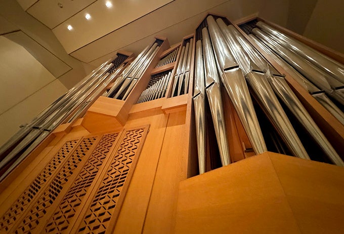 クラシック音楽、特にバッハの音楽の演奏に最適な空間を目指していたため、設計当初からパイプオルガンの設置が計画されていました。その響きは「優しく」「オーソドックスな音」と評されることがあり、ホールの超一流の音響効果と相まって、神聖で独特な響きを生み出しています。開館以来、変わることなくホールの中心でその荘厳な響きを奏でてきたパイプオルガンは、当ホールの「魂」であり、地域文化の象徴です。