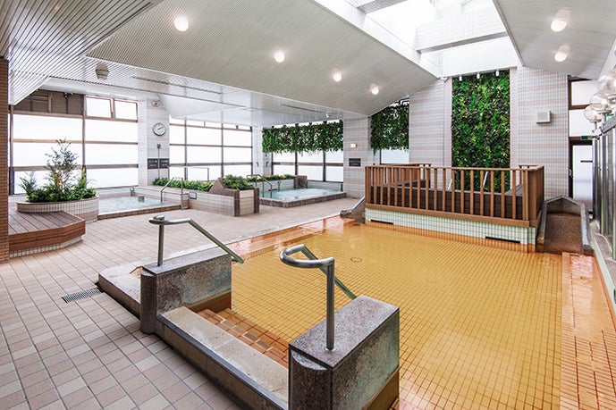 天然温泉を中心に多彩な設備を取り揃えており、ジェット泡湯やトゴール湯、うたた寝湯、高温サウナなど、汗を流してリフレッシュするとともに健康増進にも効果的です。都会でありながら、開放的なリゾート気分が味わえます。地下2000mから1日150t湧出する都内屈指の天然温泉の泉質はナトリウム塩化物強塩泉で、入浴後、塩分が肌に膜をつくって汗の蒸発を防ぎ、保湿効果が高いのが特徴です。