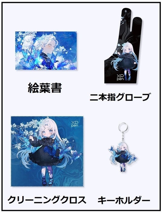 絵葉書やキーホルダーが付属、イラストの入ったグローブやクリーニングクロス
