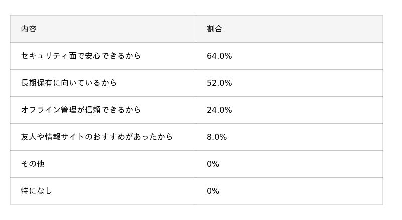 ■コールドウォレットを選んだ理由を教えてください。(複数回答可)