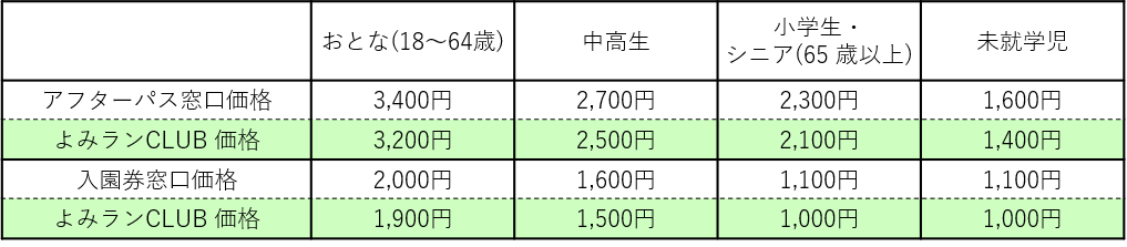 12月25日(木)はアフターパス(15:00以降入園+アトラクション乗り放題 ※一部アトラクションを除く)および入園券を、12月28日(日)~30日(火)はアフターパスを以下の価格で販売します。