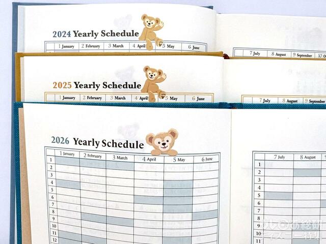 長年、ダッフィーがスケジュールの上にちょこんとお座りして左手をあげていたのですが、今回は、お手手をのせてにっこり。
